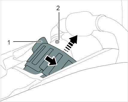 4. Push the hose out of the holding clamp -3- and press upwards.