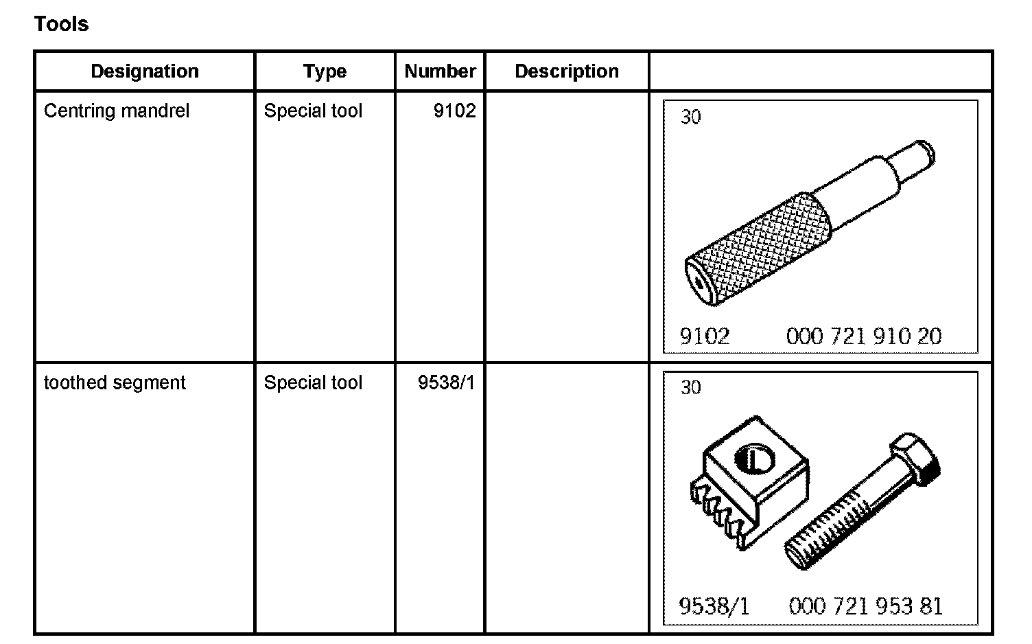 The toothed segment 9538/1 must be bored to [diameter] 15 mm to guarantee a perfect fit and to avoid damaging the thread in the crankcase.
