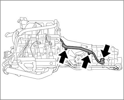 4. Unscrew eight connecting bolts between the engine and transmission and pull out the transmission to the rear.