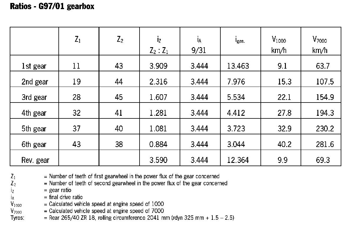 Ratios - G97/01 gearbox