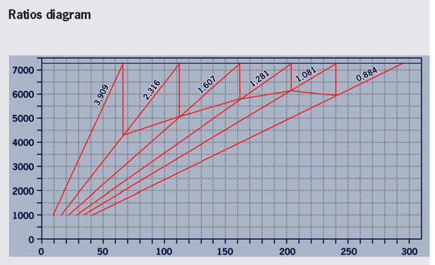 NOTE: The transmission diagram shows guidelines which are based on an average effective rolling radius. Deviations due to tyre tolerance, changes to the rolling radius, wear and tyre slip have not yet been taken into account.