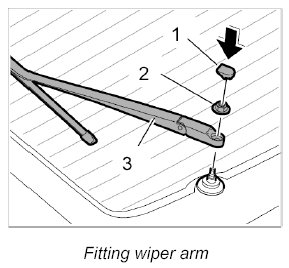 1. Position wiper arm -3- on the wiper motor drive and do up the fastening nut -2- by hand.