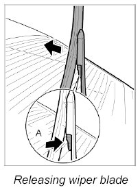1. Raise wiper arm and release and disengage wiper blade -A-.