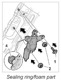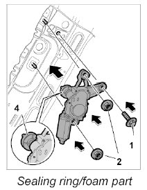 INFORMATION: If a previously installed wiper motor is installed "again", the sealing ring/foam part -4- must be replaced due to water leakage.