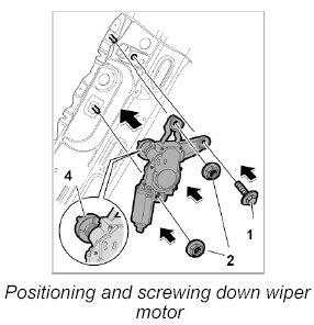 1. Position the wiper motor in the vehicle, while making sure that the drive for the wiper arm must be uniformly spaced from the rear window.