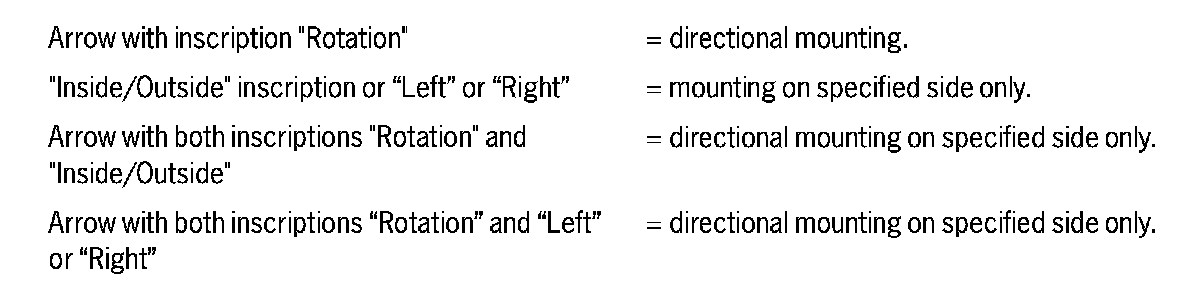 Always observe any possible instructions concerning the rolling direction and/or specifying which side the tires must be mounted on. Refer to notes on page 1 (if applicable).