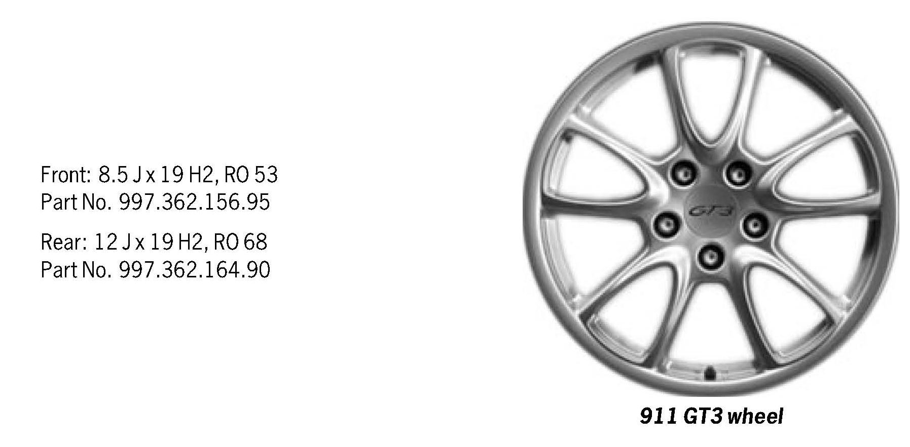 Wheel size, rim offset (RO) in mm, Part No. and Porsche logo