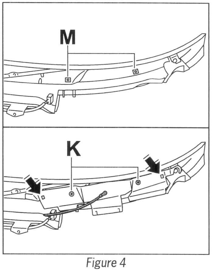 2.2 Clip telephone antenna into cowl panel cover --> Figure 4 -arrows- and secure with two 4.8 x 13 tapping screws --> Figure 4 -K-.