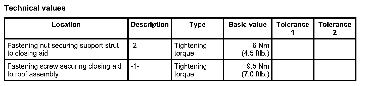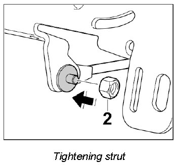 2. Engage strut on the closing aid and secure with the hexagon nut -2-. Tightening torque: 6 Nm (4.5 ftlb.)