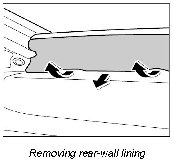Hold rear-wall lining underneath at the sides and carefully pull it out of the clips in -direction of arrow-.