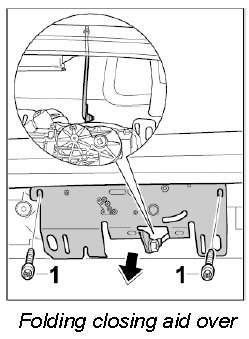 3.1. Fold closing aid support upwards -arrow-. Make sure that the support strut -inset- for the closing aid is engaged properly.