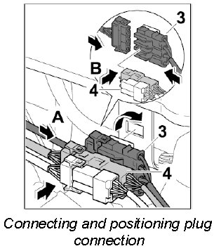 3.3. Open the lock -Arrow B- and pull connector -4- down off connector -3-.