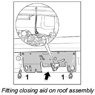 1. Unscrew the fastening screws -1- and fold over the closing aid, which is engaged in the support strut -Inset- on the body.