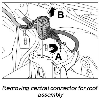 2. Disconnect power supply for the closing aid. To do this, disconnect the central connector for the Targa roof (30-pin).