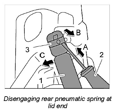 Removing rear pneumatic spring at lid end