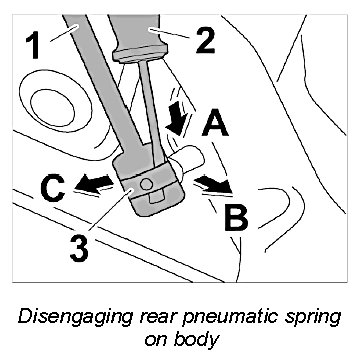 Removing rear pneumatic spring at the body