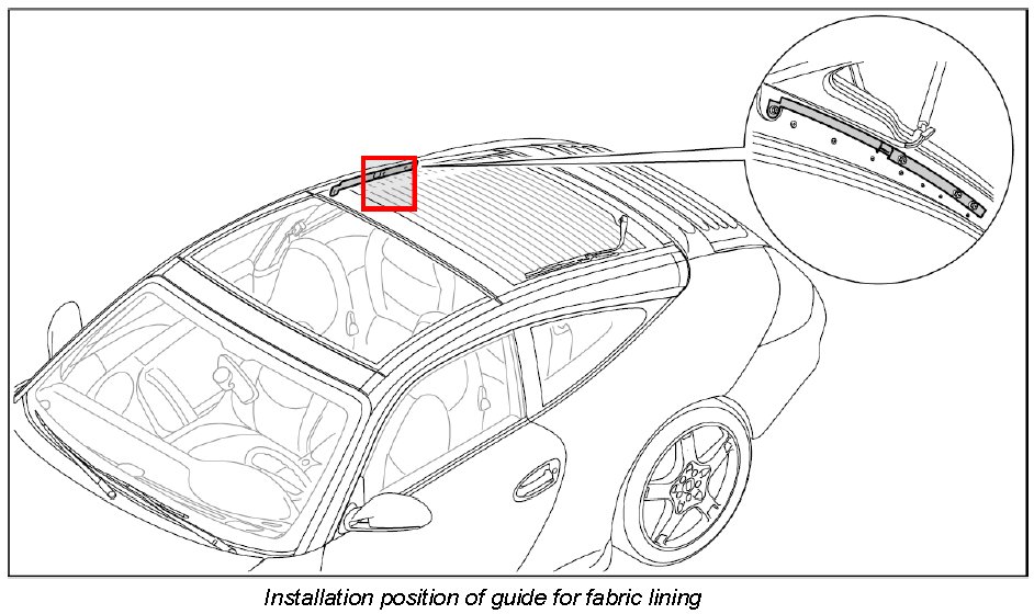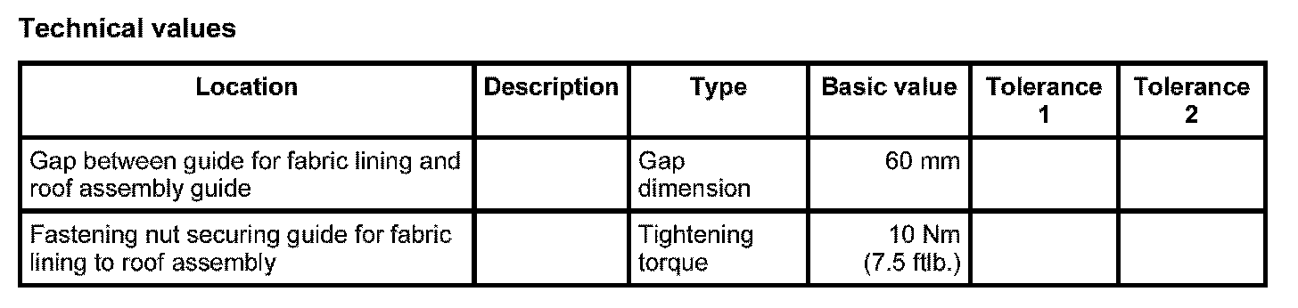 3. Set the relative position of the guide for fabric lining and the roof assembly guide using the distance gauge -3-. Gap dimension: 60 mm