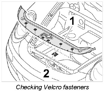 3. Lift off trim panel for lock support -1- and press Velcro fasteners -2- securely onto the front apron again using a suitable tool.