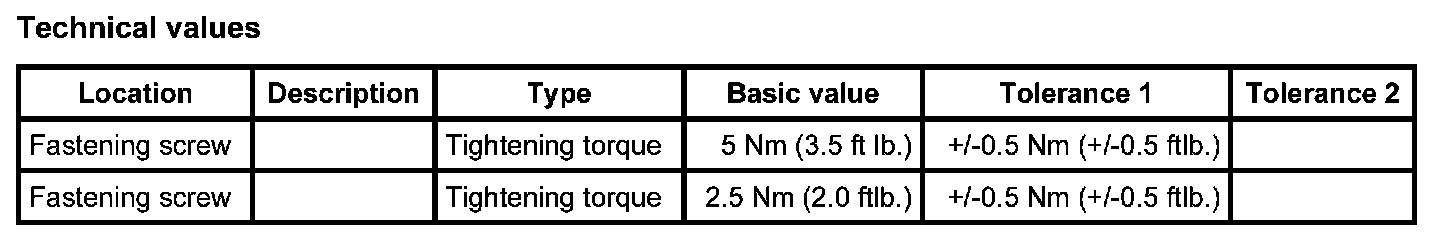 3. Tighten fastening screw -1-. Tightening torque: 2.5 Nm (2.0 ftlb.) ± 0.5 Nm (±0.5 ftlb.)