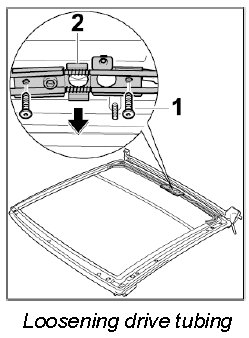 1. Unscrew fastening screws -1- on the drive tubing (metal guide tubes) -2- (-arrow-).