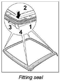 1.3. Pull protective film -3- off the adhesive strips at the corners of the seal -1-. Also apply a few drops of instant adhesive to the corners and press seal -1- on firmly at the corners to secure it to the frame for the sliding roof cover -2-.
