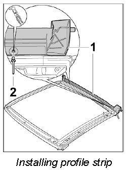 1.2. Press seal -1- all the way around into the groove in the frame for the sliding roof cover -2-.