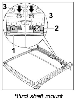 5. Position blind shaft mount at the right -1- and left -2- and secure with fastening nuts -3-. Tightening torque: 5.5 Nm (4.0 ftlb.)