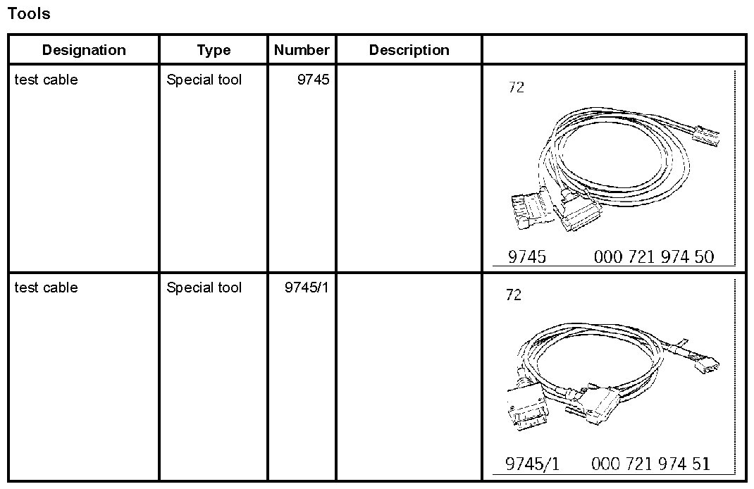 1. Connect the removed seat to the vehicle's wiring harness via test cable 9745 and test cable 9745/1.