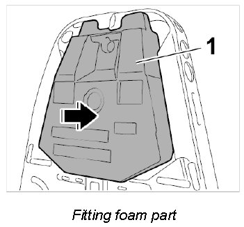 - Make sure that the hoses are not pinched. Insert hoses exactly into the cut-outs on the foam part.