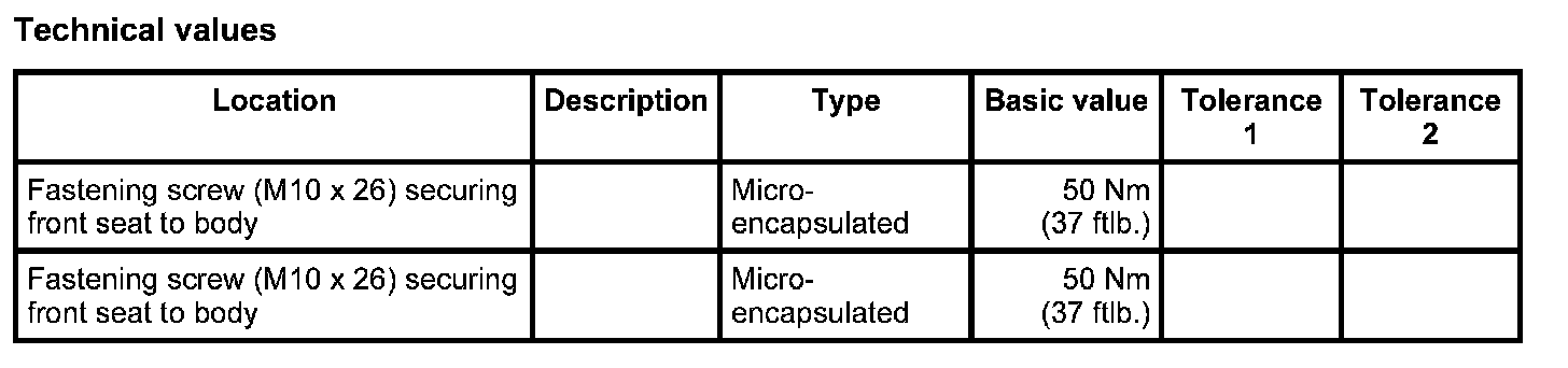 - Always replace fastening screws for the front seat after customer service and reworking.