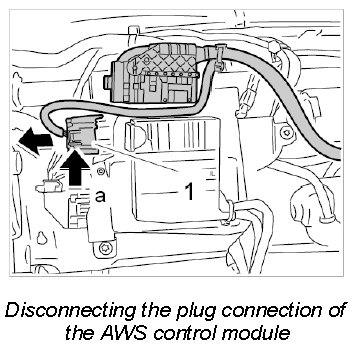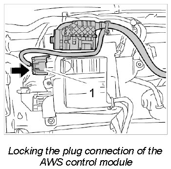 1. Push electric connector -1- onto AWS control module until it is felt to engage.