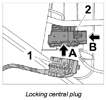 1. Release electric connector -1- by pressing the lug -arrow a- and pull off from control module.