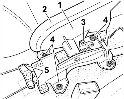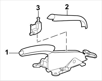 The parking-brake lever -1- is supplied as a spare part, complete with bracket, cover -2- and switch -3- (for warning light indicating that the parking brake is on).