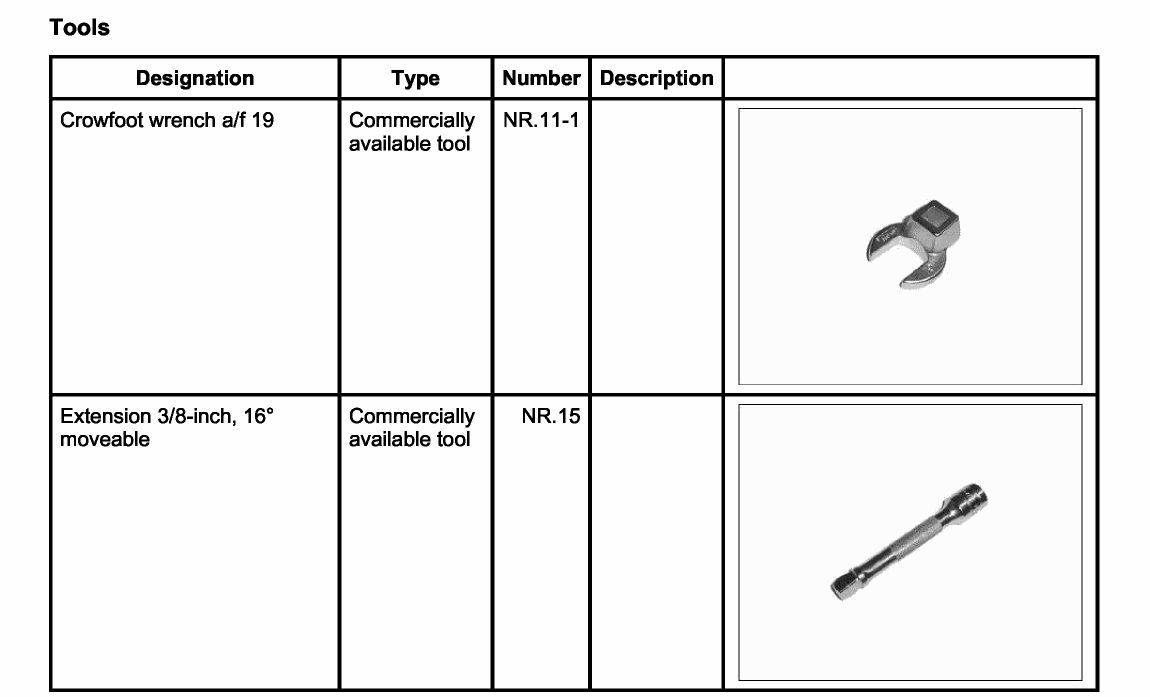 3. Remove oil-pressure sender with Extension 3/8-inch, 16 degrees moveable NR.15 and a crowfoot wrench a/f 19 NR.11-1 -1-. Use a long, 3/8-inch extension -2- also.
