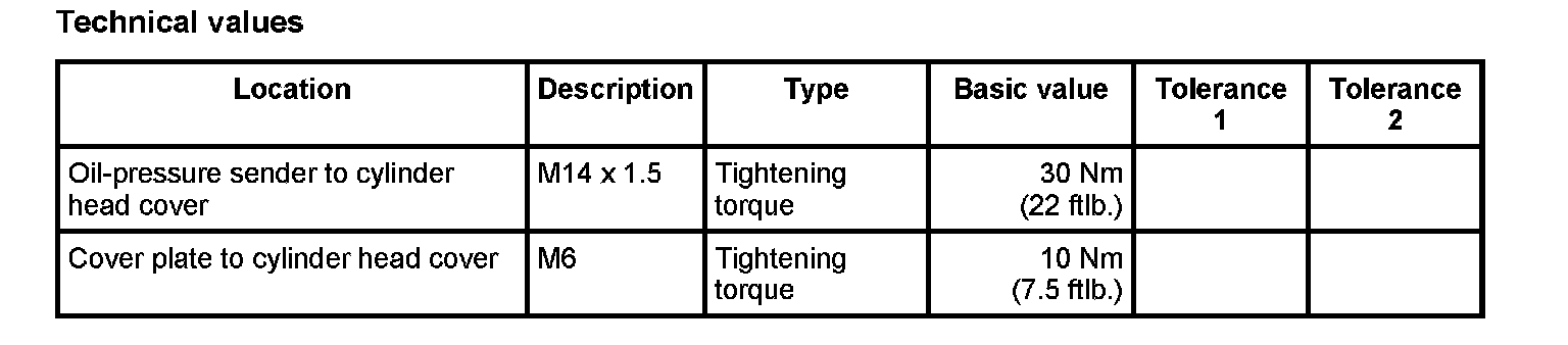 1. Position oil-pressure sender with new sealing ring on cylinder head cover, side 4-6.