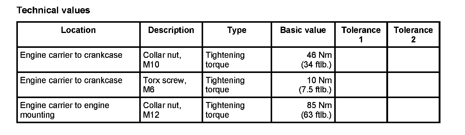 4. Tighten M12 collar nuts on left and right engine mountings. - Tightening torque: 85 Nm (63 ftlb.)
