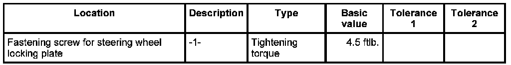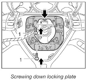 3. Position locking plate on steering wheel and screw down using the four fastening screws -1- and the washers. - Tightening torque: 4.5 ftlb.