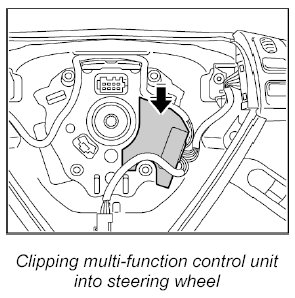 2. Clip multi-function control unit into steering wheel. Check that it is secure.