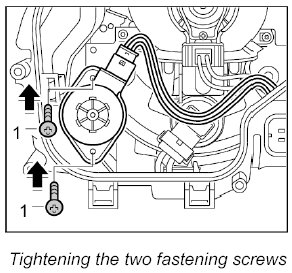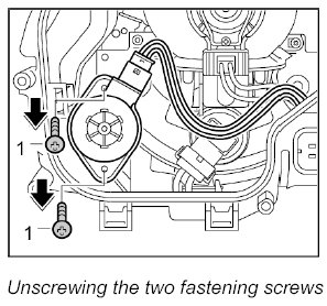 1. Unscrew the two fastening screws -1- for the servo motor.