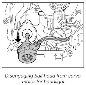 2. Engage servo motor in the actuator for the main headlight and push servo motor upwards.