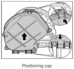 1. Position cap on main headlight and press into place, making sure that the cap engages once at the top and twice at the bottom.