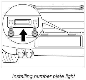 1. Insert number plate lights and tighten with the two fastening screws.