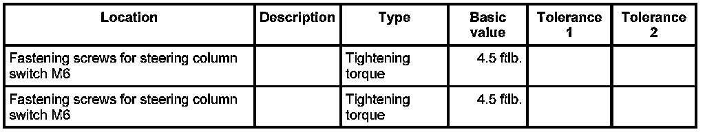 Technical values - steering column switch