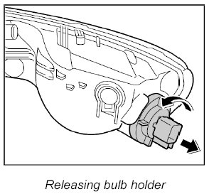 2. Press the bulb into the bulb holder, turn it clockwise and remove it from the bulb holder.
