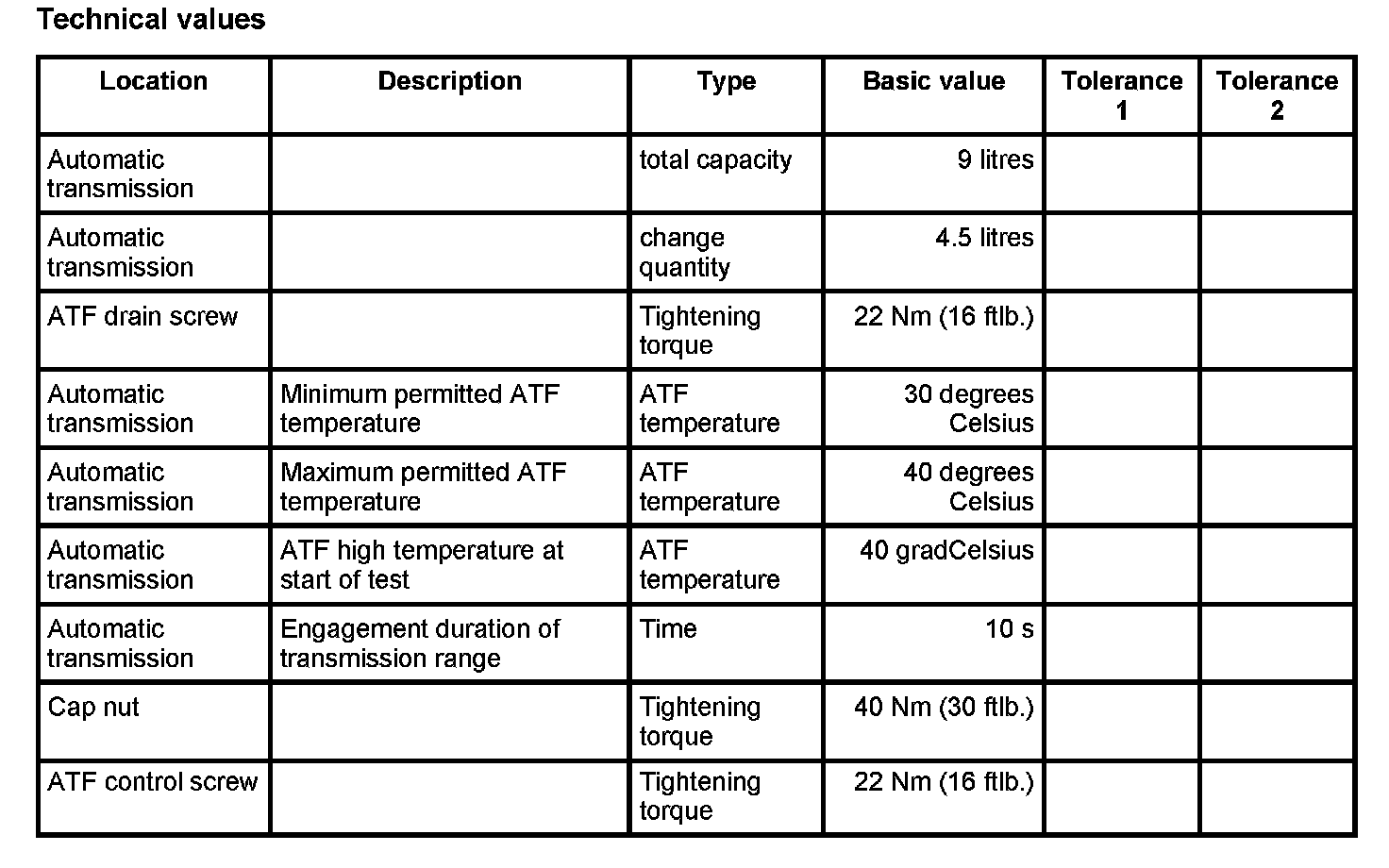 The ATF temperature at the start of testing must not be higher than -> ATF temperature: 40°C.