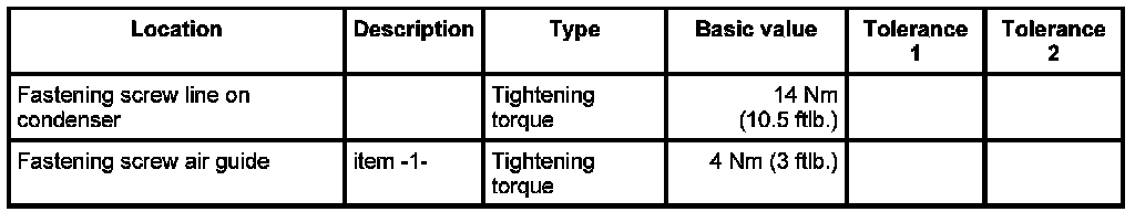 1. Unscrew the two fastening screws -1- holding the air guide for the condenser.
