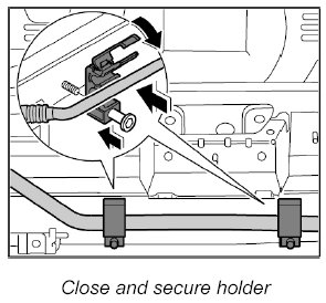 2. Attach line to both holders, close holders and secure with fastening screws.