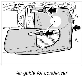 2. Pull the air guide forward and disengage it at the condenser -A-.