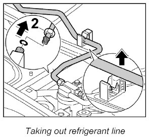 - Before re-installing the component, check the O-rings of the refrigerant lines for damage and replaced them if necessary.