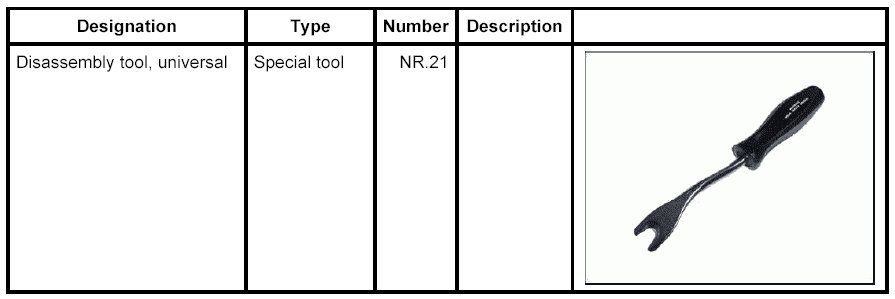 5.1. Unlock locating peg -1- of the support using the commercially available removal tool Disassembly tool, universal NR.21.